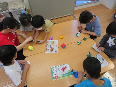 5月17日(金)に「作って遊んでみよう」を行いました。折り紙を使って、遊べるおもちゃを作ってみます。